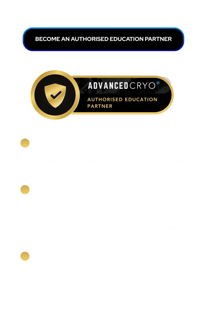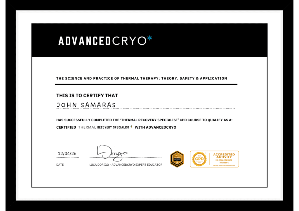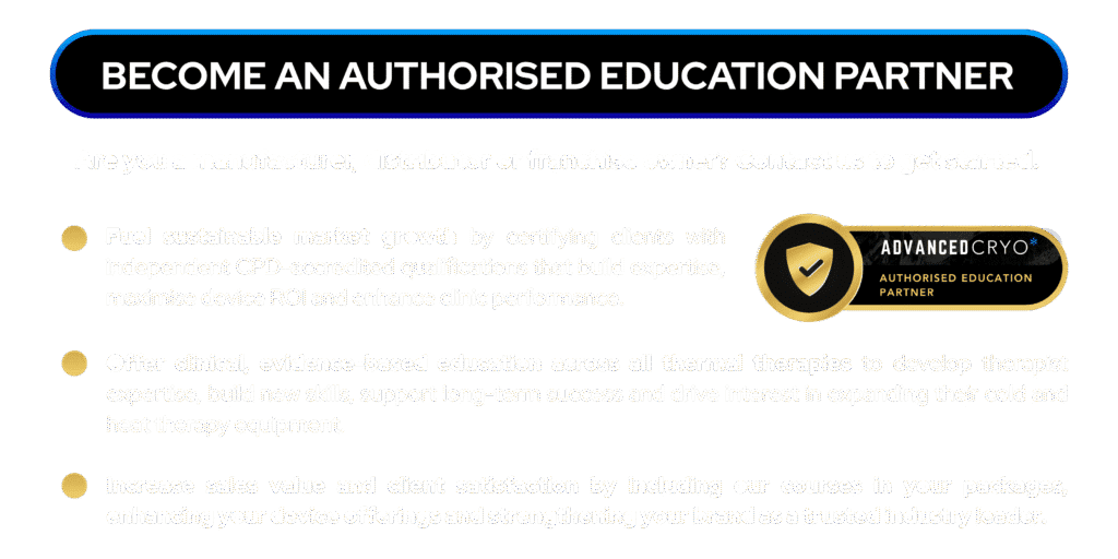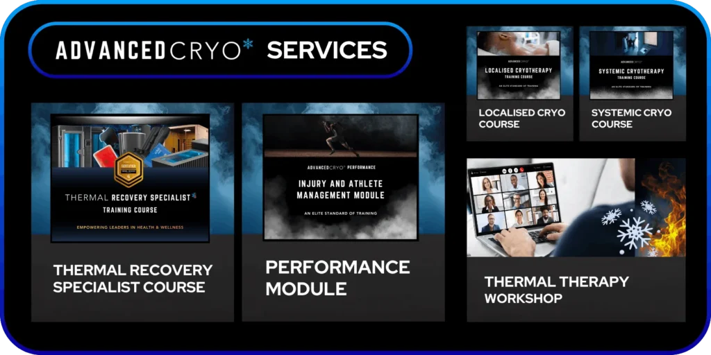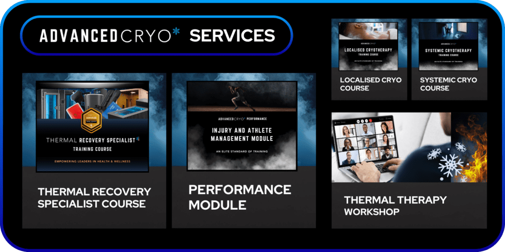 AdvancedCryo is a global education provider setting the recognised standard for thermal therapy training. We educate and qualify professionals to become recovery specialists, specialising in cold and heat therapy, equipping them to manage clients effectively and deliver individualised, evidence-based care across recovery, performance and wellness.