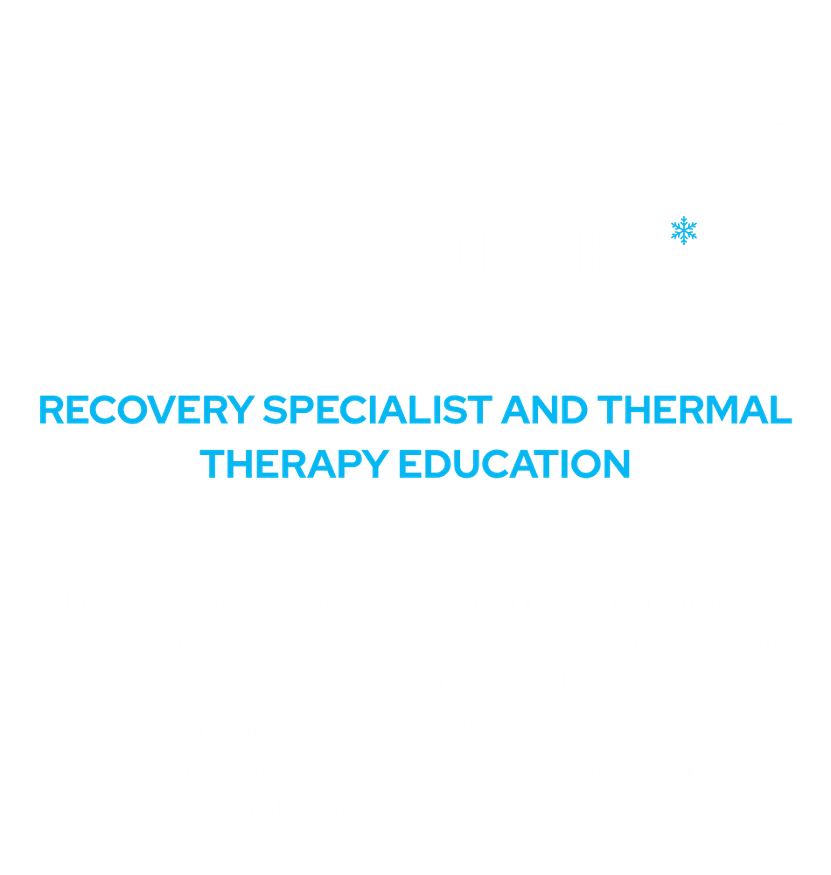 A CryoSpecialist is a specialist in recovery who integrates Cryotherapy, thermal interventions and physiological principles to deliver high-level, personalised care across wellness, rehabilitation and performance.